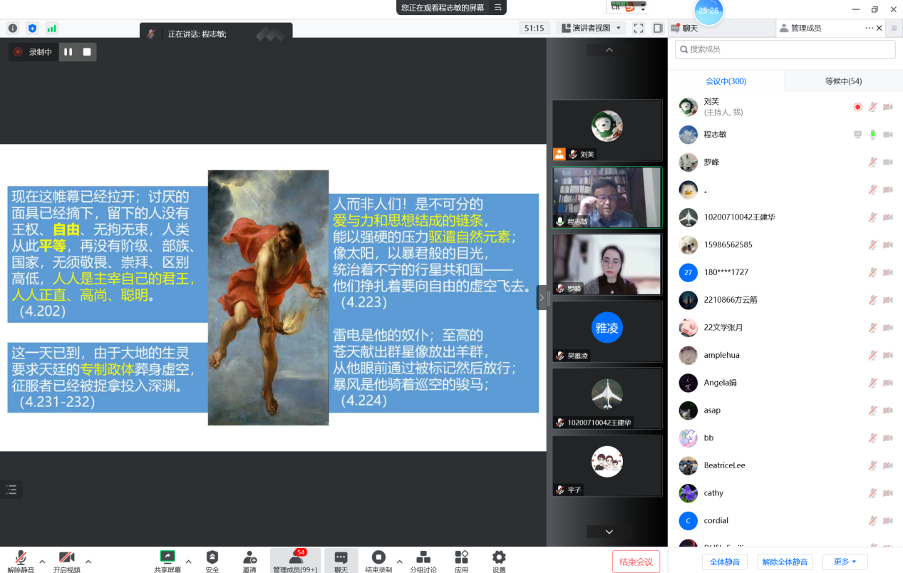 程志敏教授在讲座最后强调,从思想史上来看,普罗米修斯的形象复杂多面,我们不能用扁平形象看待这一神话人物。