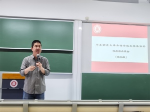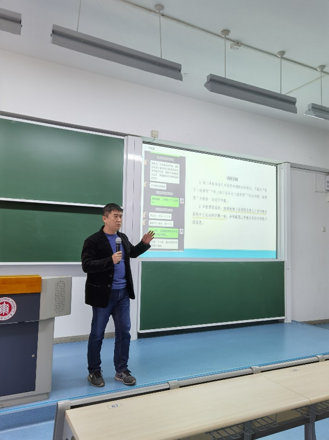 李征老师做了关于“混合式教学模式的探索与反思—以《通用学术英语听说》课程为例”的主题报告。《通用学术英语听说》课程是我校本科生公共必修课,被教育部首批认定为国家级一流本科课程(线上线下混合式一流课程)。在报告中,李老师着重介绍了本课程7年的建设过程、开课情况、选课高校、课程目标、课程设计、形成性评价体系和在线、混合式课程标准。以“跨文化交际”单元为例,李老师展示了线上、线下课程的具体教学目标与教学设计,进而对学习活动指标做了具体解读与策略介绍。最后,在课程建设反思中他特别强调“调整心态,拥抱变革,敢于尝试,包容失误,明确标准,设计先行以及客观评价、及时调整”的重要性。
