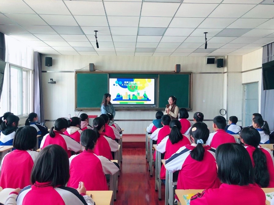 现场教学活动中,志愿者王彤、何琰为当地中学生开启了一段妙趣横生的寻声之旅。通过精心设计的教学环节传授英语音标基础知识。课堂上,学生反响热烈,踊跃发言,现场气氛活跃。课后,志愿者还为每位参与课程的学生进行了语音测试存档,将作为后期教学检测依据。我院还为学生们赠送了英语学习资料和学习用品。