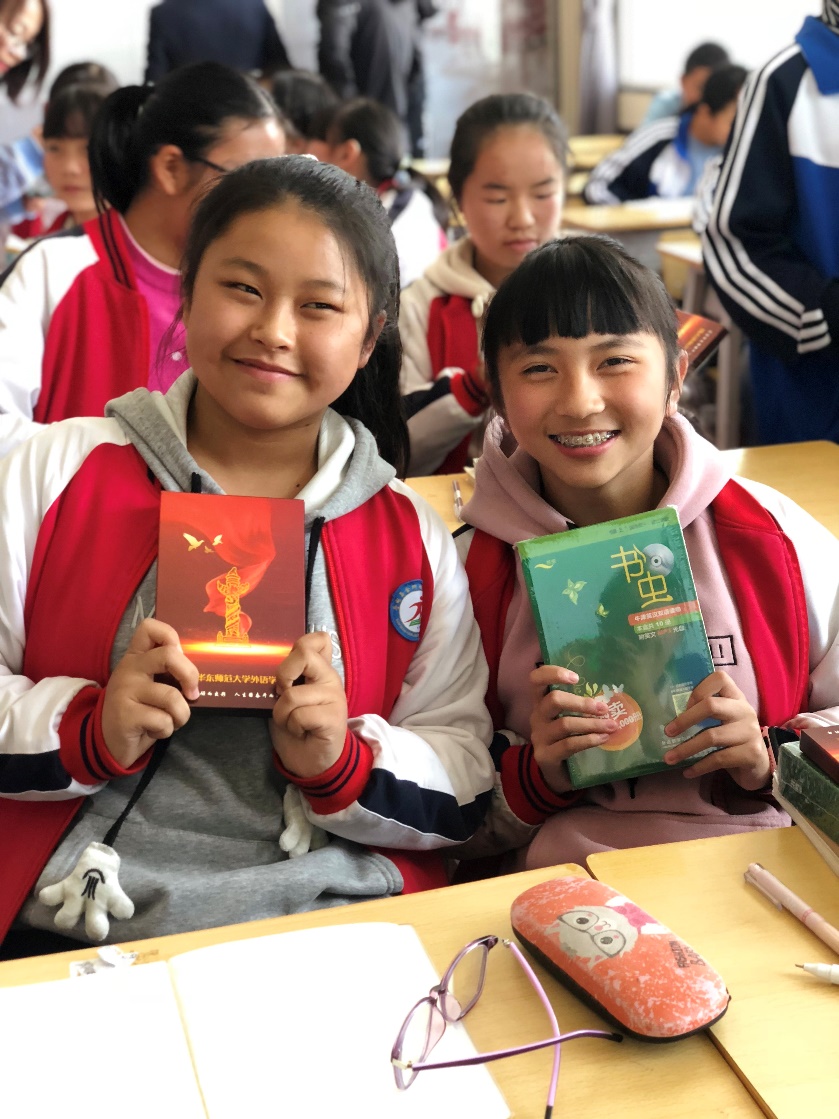 10月23日,华东师大调研寻甸县扶贫工作座谈会在寻甸县人民政府举行。365英国上市官网在线党委副书记江宇靖和寻甸县金所中学校长张卫强为英语能力提升项目揭牌。团委书记周俊辰以及团队志愿者王彤、何琰参加了揭牌仪式。下午师生一行来到金所中学进行调研,并开展现场教学活动。座谈会上,江宇靖向金所中学为我院师生提供实践育人机会表示感谢,并就项目前期实施和拟推进的教师培训、学生社会实践等与金所中学进行了沟通交流。双方达成长期实行英语教学帮扶项目的共识。江宇靖代表365英国上市官网在线向金所中学赠送由我院虞苏美老师翻译的《三国演义》全套英译本,传达美好期望。