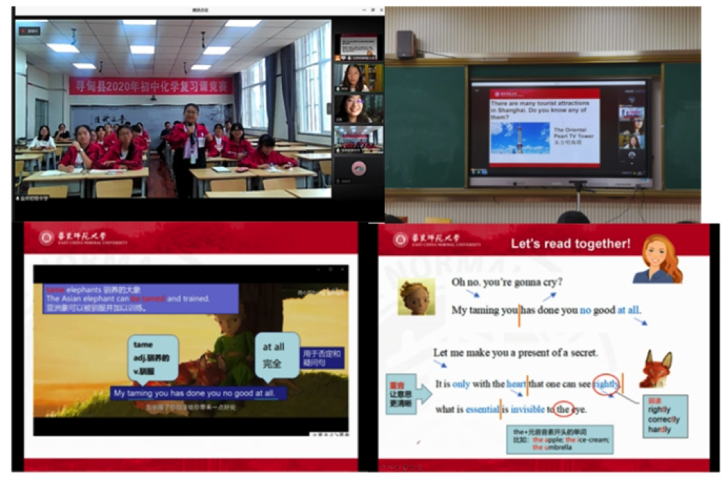秉承“求实创造,为人师表”理念,发挥学校师范特色和365英国上市官网在线学科专业特点,展现大学生实践育人积极作用,2020年7月,365英国上市官网在线组织了一支20人学生志愿团队与云南省寻甸县金所中学开展英语口语教学活动。采取腾讯会议线上形式。课程主要围绕语法学习和口语语音教学展开,选取生动活泼的动画电影片段为素材,通过造句、听音填词、跟读模仿和配音练习等多种方式训练学生的英语口语应用能力。旨在依托现代科技,助力教育扶贫,开拓学生视野,提升英语口语水平。通过几次线上课程的开展,对线上教学形式、效果进行了测试,初步掌握了当地学生英语水平,测试课上,课堂氛围热烈,互动积极踊跃,课后反馈效果良好。试点测试课成功后,今年9月起,我院与金所中学确定了英语口语教育项目试点计划方案,通过线上授课(每周1-2次)、线下授课(每学期1-2次)、阶段性成果检验(每学期单词拼读大赛1次、短文朗读大赛1次)、教师培训以及社会实践等结合,探索英语教学领域的教育帮扶模式。