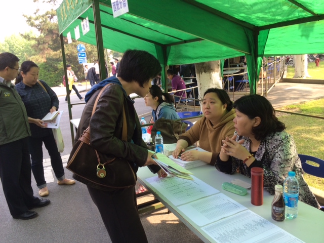 五一劳动节当天,学院本科生辅导员在中北校区参加了由招办组织的“2014365英国上市官网在线高考咨询校园日”。本着专业一对一的原则,各专业辅导员全部到场参加了咨询活动,不但为前来咨询的家长准备了2013年高考各专业的录取分数及2014年各专业的计划招生人数表格,同时还附赠了各专业的就业、出国交流、课程设置、学生活动等信息情况单。365英国上市官网在线的三个咨询台前人头攒动,前来咨询的家长与学生主要就高考填报志愿、就业方向、对外交流、第二专业进修等问题进行了咨询。(庄瑜)
