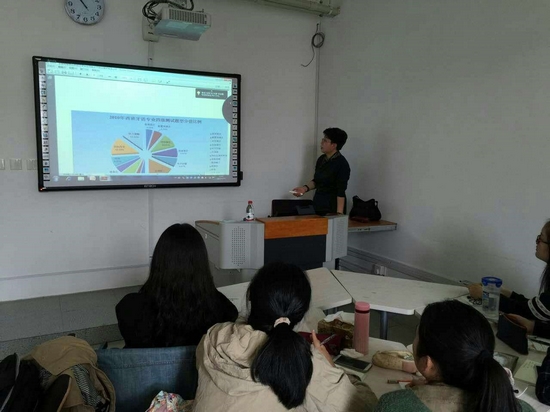 讲座中,于漫老师通过对西班牙语专四考试的发展过程以及数据分析,向同学们介绍了西班牙语专业四级考试的专业性以及重要性,并就专四考试的改革方向作了深度解析。