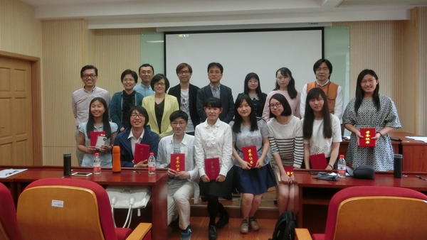 最终,12级的陈丽冰同学、14级的曾子霈同学脱颖而出获得一等奖。鲍一风、吴慧婷同学获得二等奖,于东、居慧、刘涵、汤伊姮同学获得三等奖。评委老师向各位获奖选手颁发了奖状和奖品。